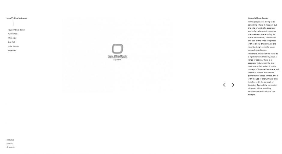طراحی سایت شخصی مجید میرزایی توسط شرکت طراحی سایت در کرج منسیکس انجام گردیده است. پس از فارغ التحصیلی کارشناسی ارشد، سعی کردم گام های کوچکی در عمل معماری برداشته باشم. من عاشق روند و اکتشاف در ایده ها و مفهوم برای ایجاد یک فضای غنی و شخصیت قوی در معماری ساده هستم. وقتی که من در یک کوچه، در وسط طبیعت قدم می زنم. و زمانی که من بین یک راهرو تاریک هستم که منجر به نور روشن می شود. برای من بسیار جالب هستند.